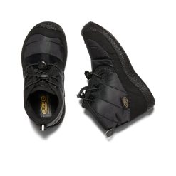 The coziest. waterproof. inside-outside winter chukka for kids. With 100g of KEEN.WARM insulation. faux fur liner. and an easy bungee cinch.
